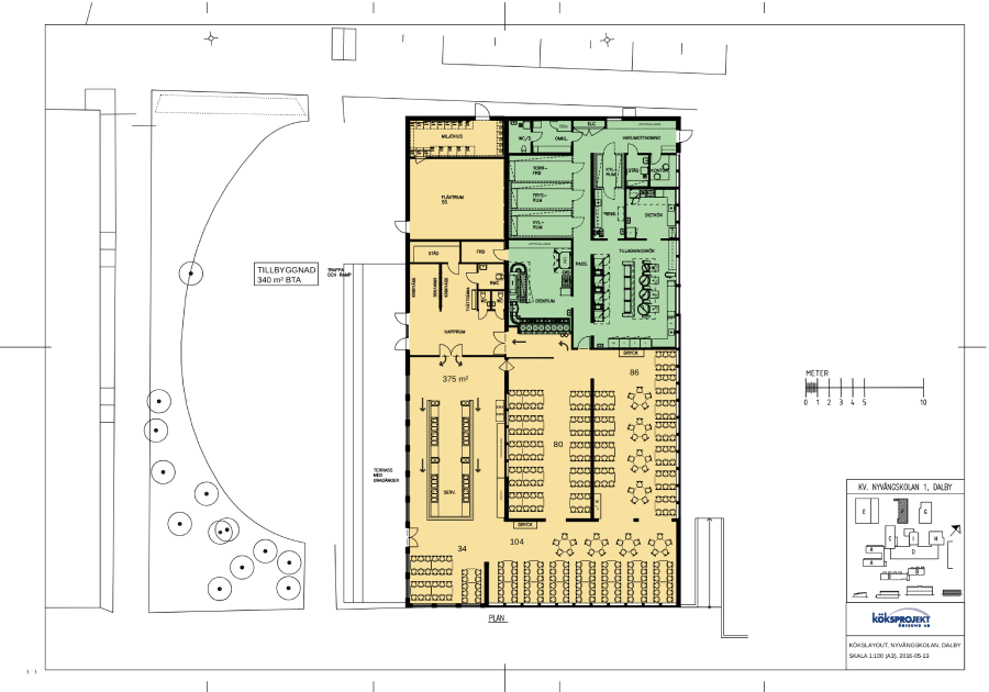 På beställning av Lundafastigheter har vi projekterat ett tillagningskök med kapacitet för ca 1300 portioner. Vi har ritat en öppen servering, denna ger ett enklare flöde för gästerna och blir ett trevligt inslag i matsalen.