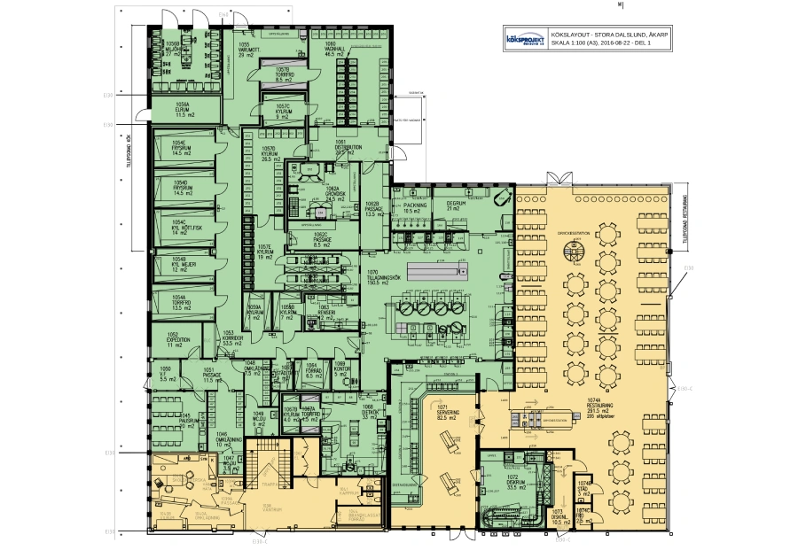 I kvarteret Sofia har vi ritat ett förskolekök för 4 avdelningar och ett restaurangkök för ca 200 – 250 gäster. Detta har vi gjort i nära samarbete med Tema Arkitekter.