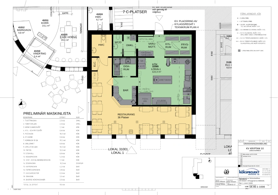 LKF AB has commissioned plans for a new restaurant kitchen, dimensioned for approximately 100 servings. The floor plan has been designed in collaboration with the intended restaurateur. The restaurant will have a small outdoor dining area.